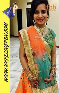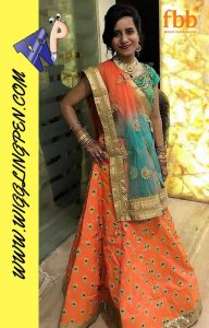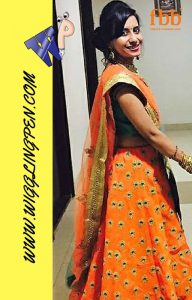 Tried with Orange lehnga and green blouse with double shaded net dupatta we tried giving it totally Indian look by mixing Jodha set and mehndi in hands.