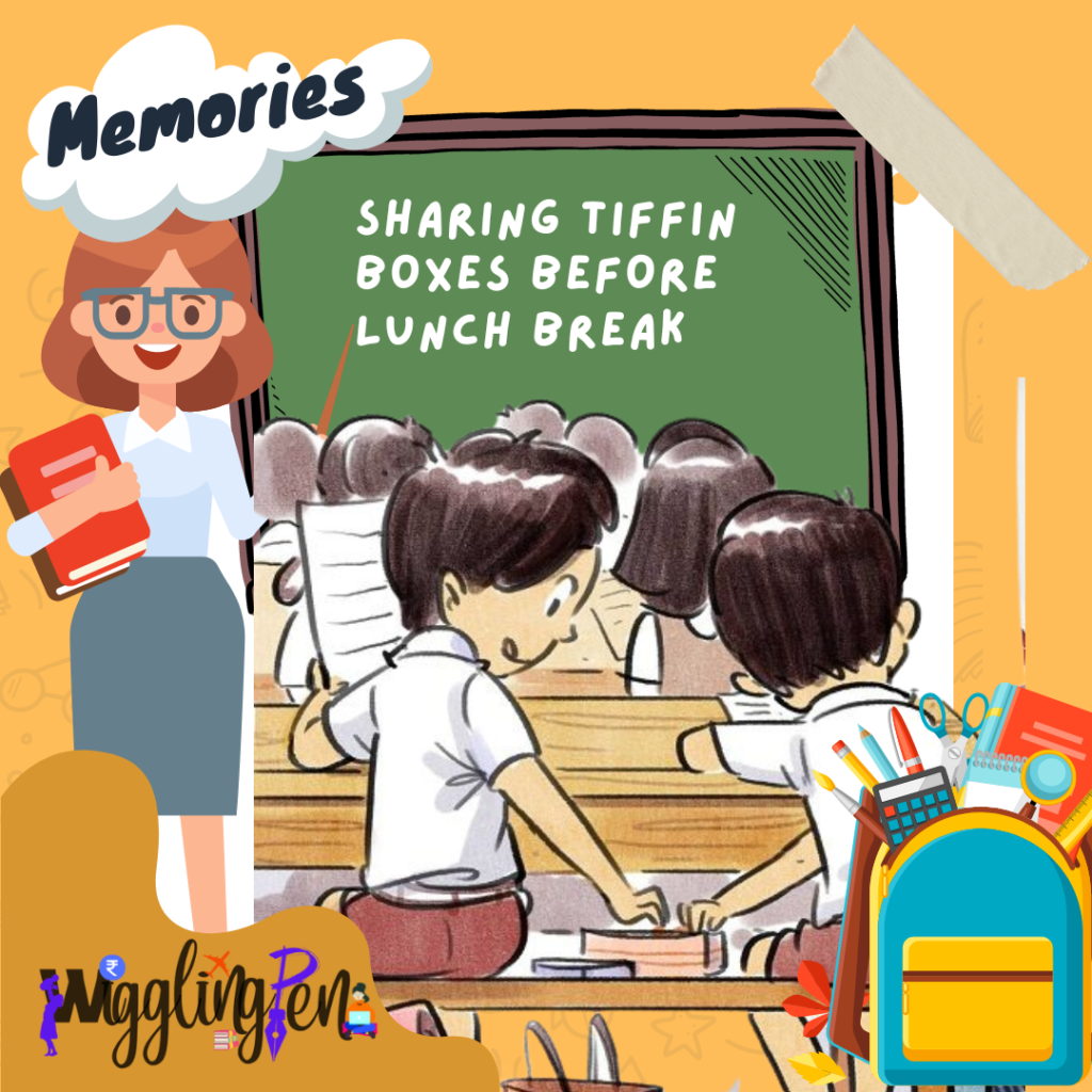3. Some fun that was not allowed: Have you ever finished your tiffinbox before lunch break? Well, I have not only finished mine but also tiffin boxes of others with my friends before class. And that smell of aaloo ki sabji in class complains teacher that someone is having tiffin box.